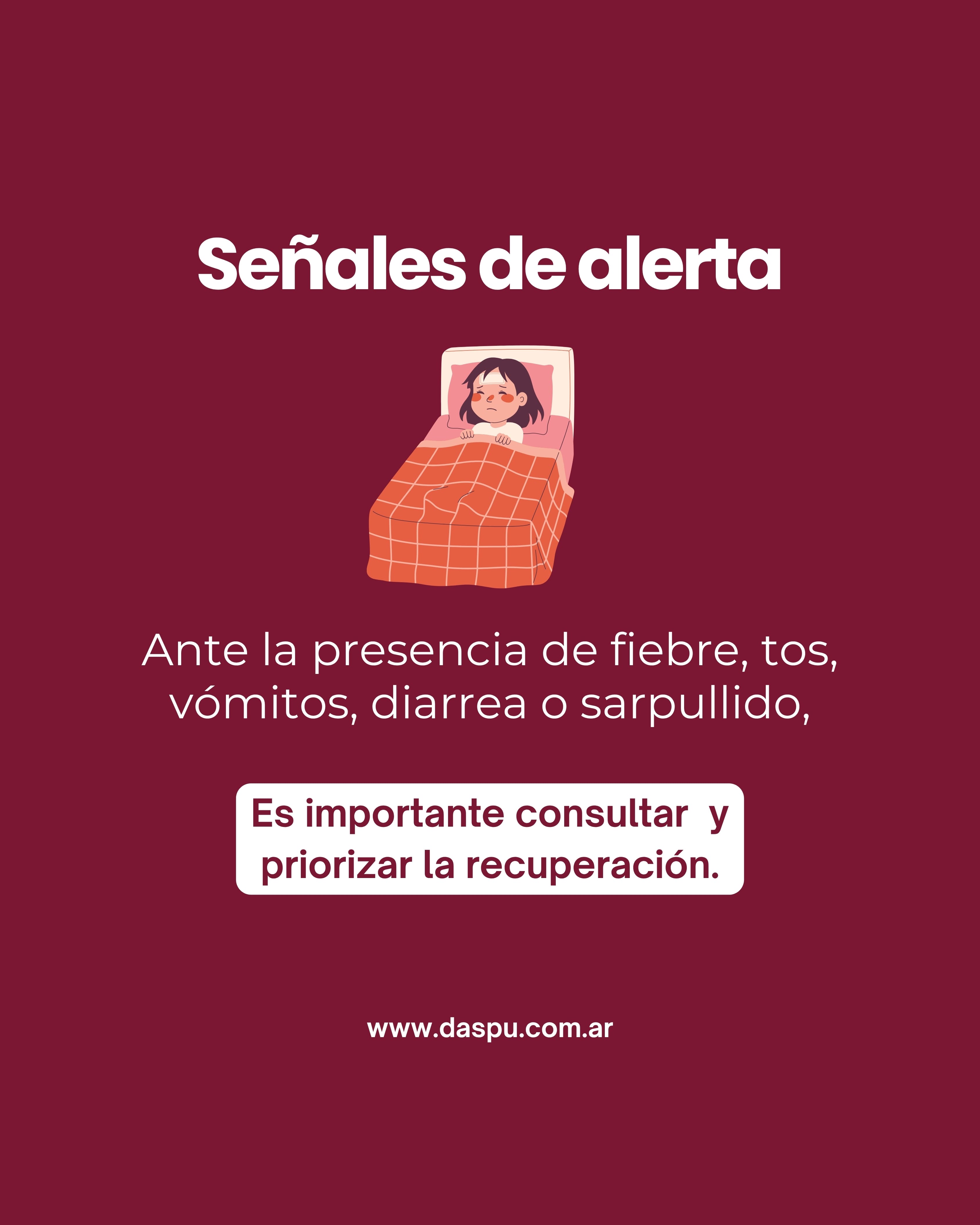 Ante la presencia de síntomas como fiebre, tos, vómitos, diarrea o sarpullido, es importante consultar y priorizar la recuperación.